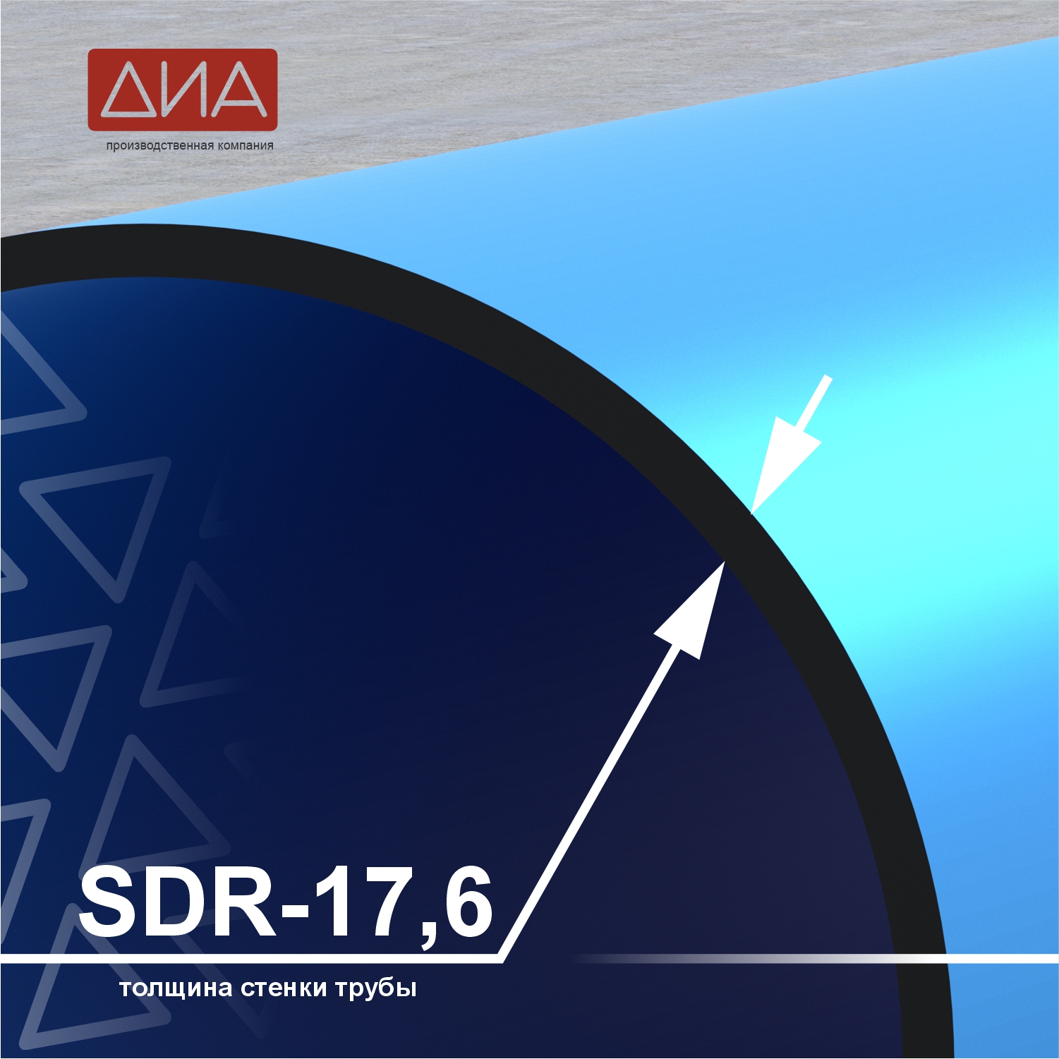 Технические условия» (с Поправкой, с Изменениями N 1, 2).соответствует классу ПЭ100-RC;ПЭ100. ПНД трубы для водоснабжения обладают долгим сроком службы, стойкостью к химическому воздействию и коррозии. Гарантия от производителя 2 года со дня изготовления. Низкая стоимость, быстрое производство и монтаж, отсутствие токсичных материалов в трубах делают их популярным строительным материалом в сфере водоснабжения. Труба ПНД ПраймЛэй SDR-17.6 с диаметром d-355 мм мм и толщиной стенки 20.1 мм имеет номинальное (условное) давление 9.5 атм.