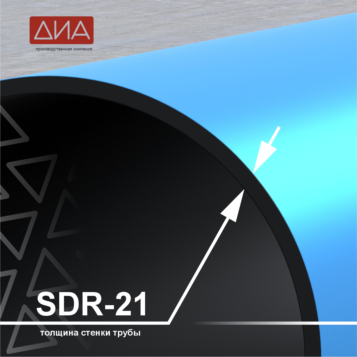 Технические условия» (с Поправкой, с Изменениями N 1, 2).соответствует классу ПЭ100-RC;ПЭ100. ПНД трубы для водоснабжения обладают долгим сроком службы, стойкостью к химическому воздействию и коррозии. Гарантия от производителя 2 года со дня изготовления. Низкая стоимость, быстрое производство и монтаж, отсутствие токсичных материалов в трубах делают их популярным строительным материалом в сфере водоснабжения. Труба ПНД ПраймЛэй SDR-21 с диаметром d-630 мм мм и толщиной стенки 30 мм имеет номинальное (условное) давление 8 атм.